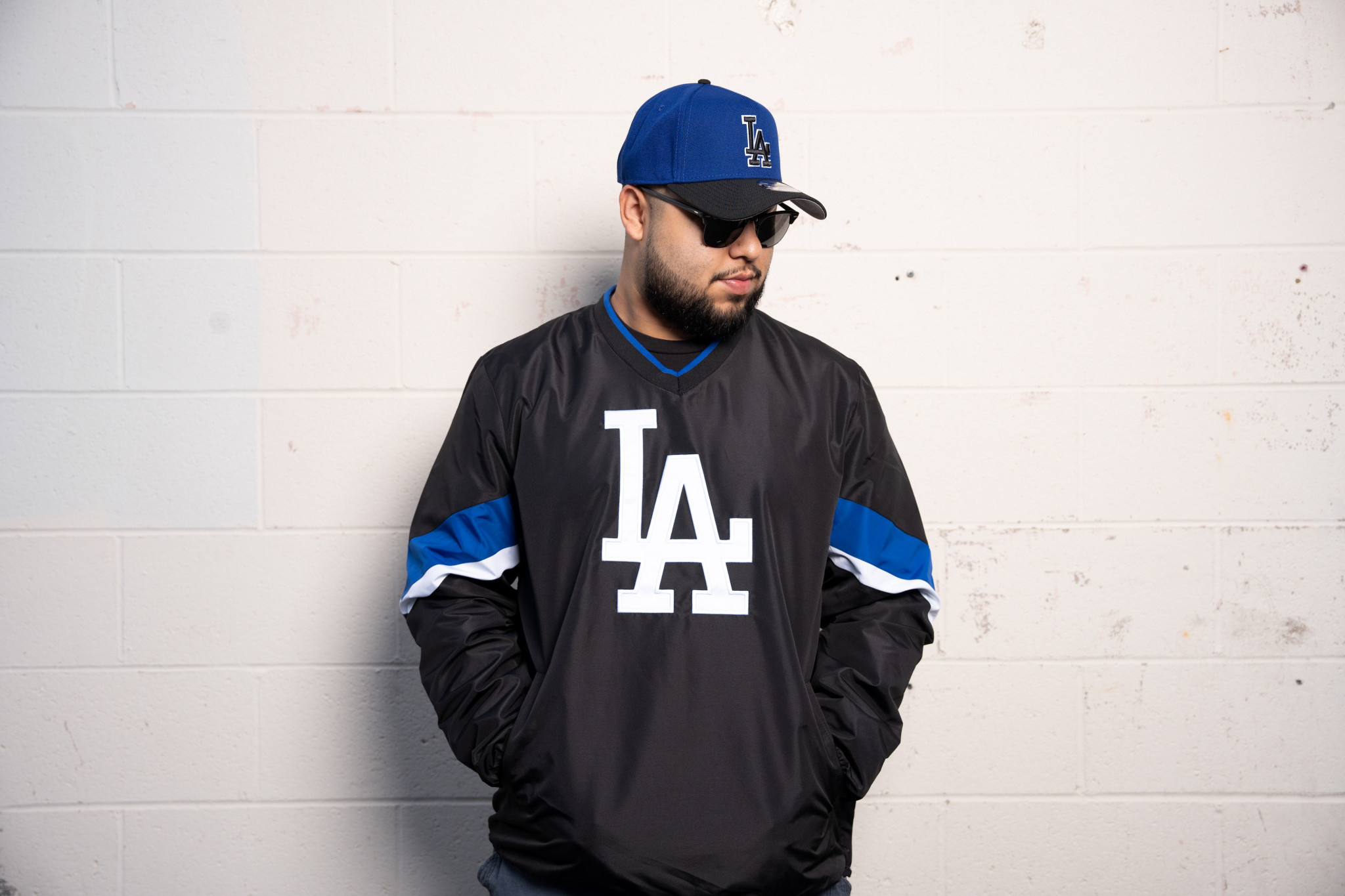 LA Dodgers M GIII Yardline Black V-Neck Pullover