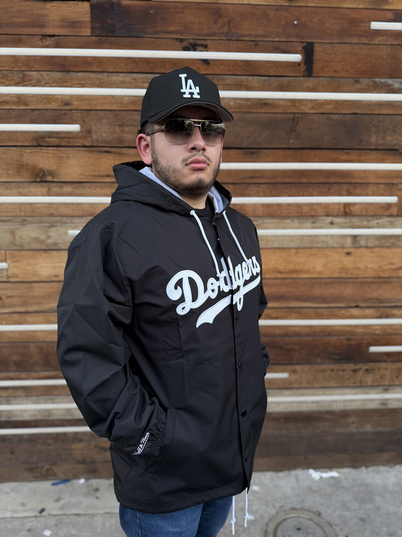 LA Dodgers M&N Hooded Coaches Jacket Black