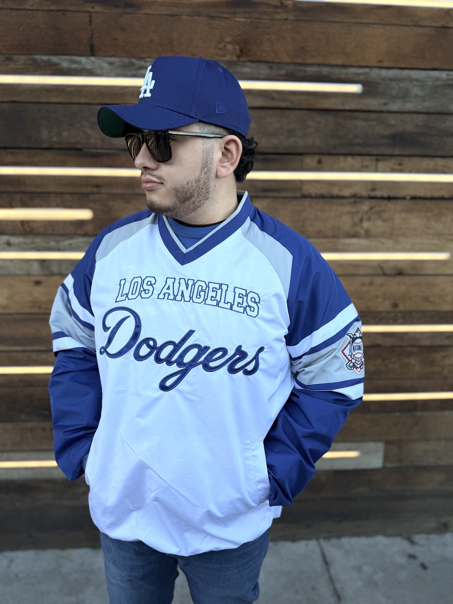 LA Dodgers Men's Starter Infield Play White V-Neck Pullover Jacket