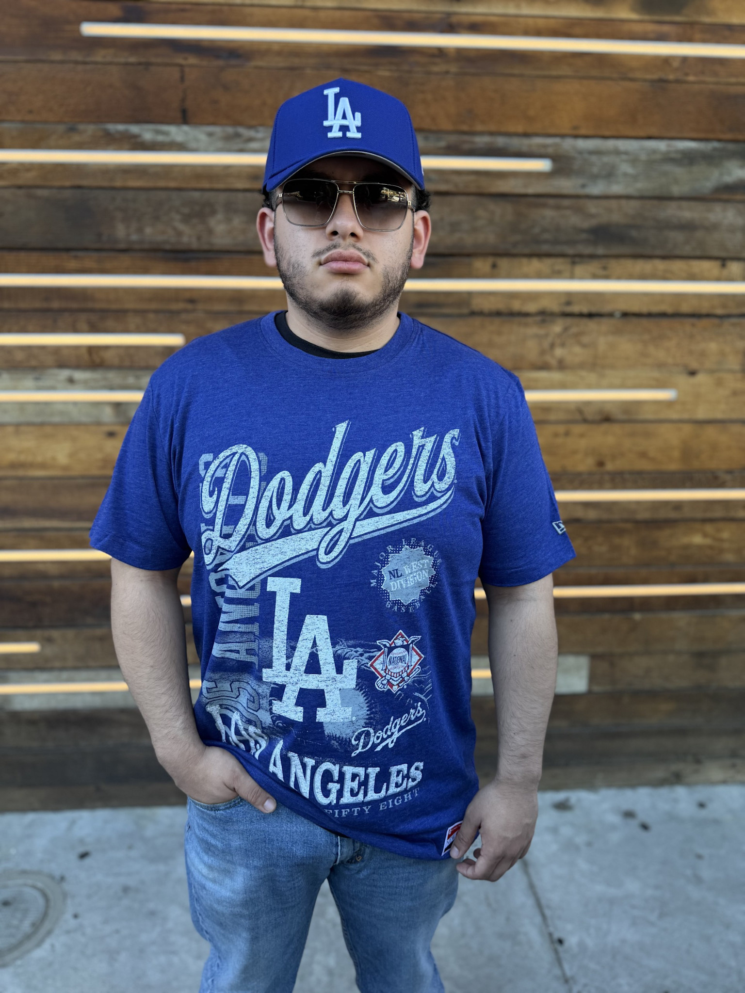 LA Dodgers NE Men's Royal Distressed Bi-blend NL West Est Tee