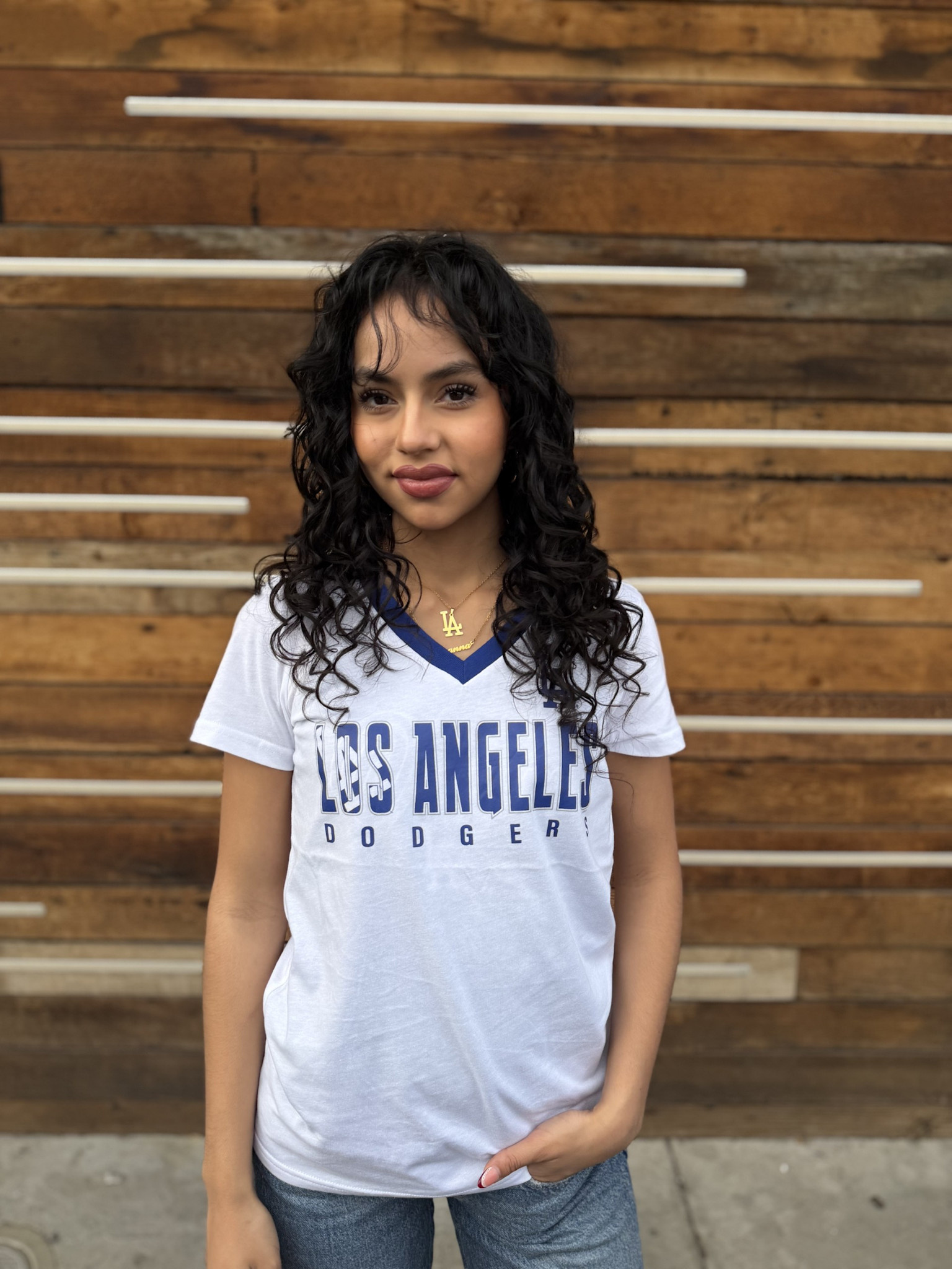 LA Dodgers Women's GIII Best Team Royal V-Neck Tee