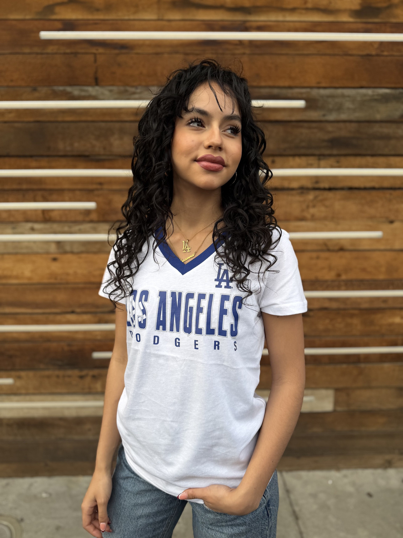 LA Dodgers Women's GIII Best Team White V-Neck Tee