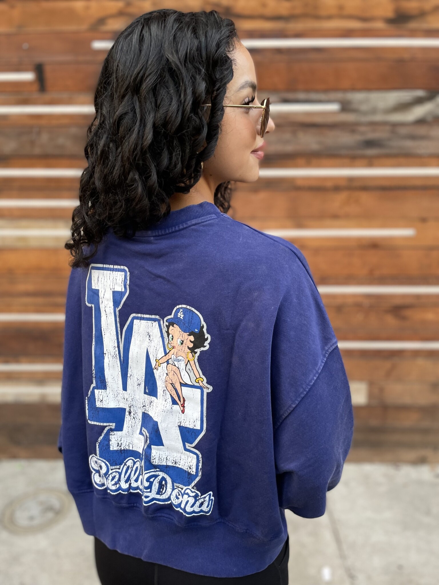 LA Dodgers Women's New Era x Bella Dona Betty Boop Royal Crew Sweatshirt