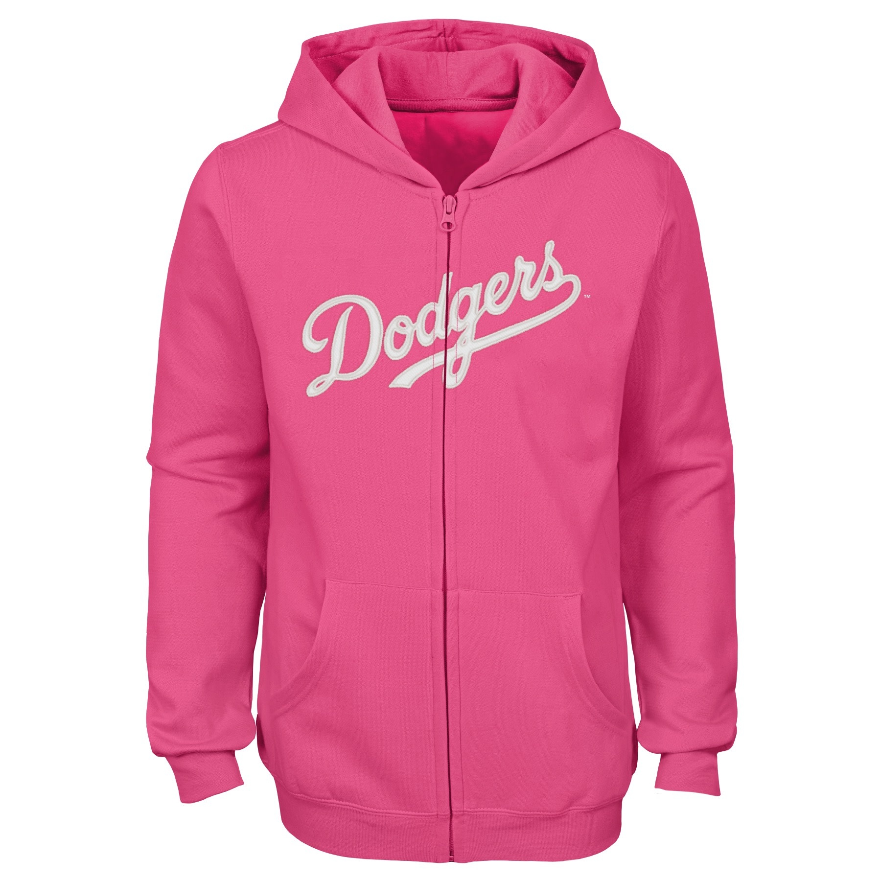 LA Dodgers Youth Girl's Wordmark Pink Full Zip Hoodie