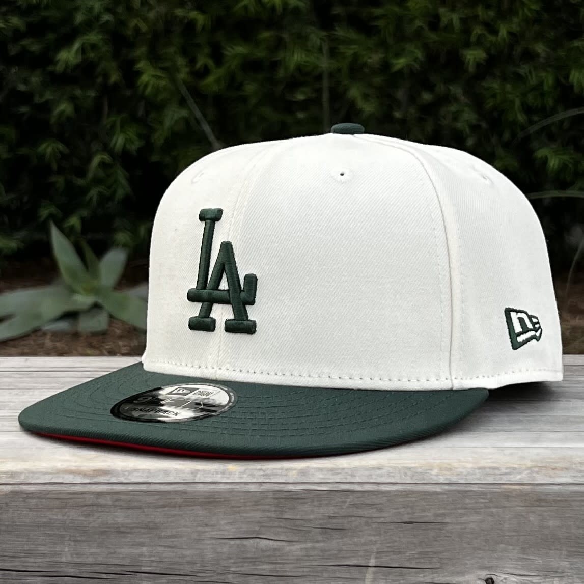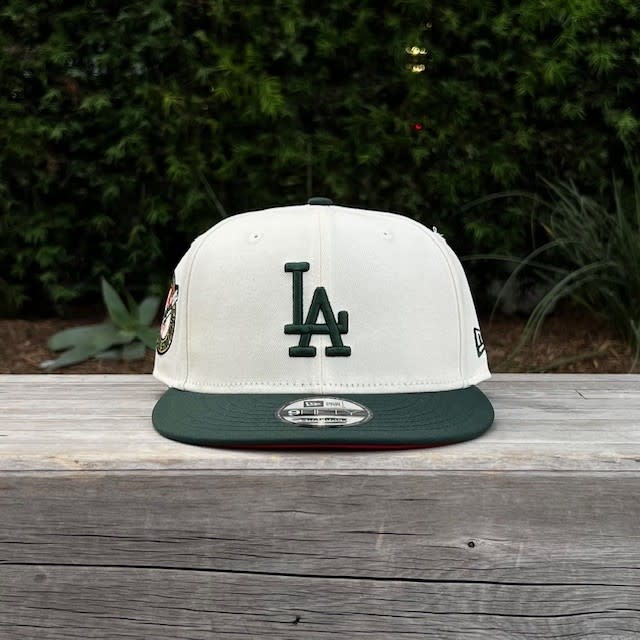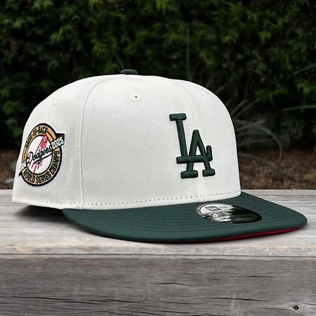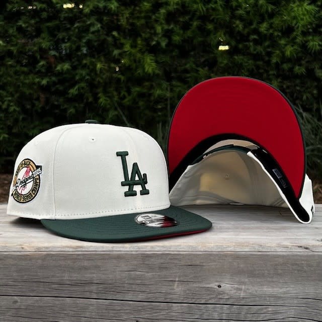 LA Ivory/Dark Green Back to Back World Series Champs Circle Red Under Visor 950 Snapback