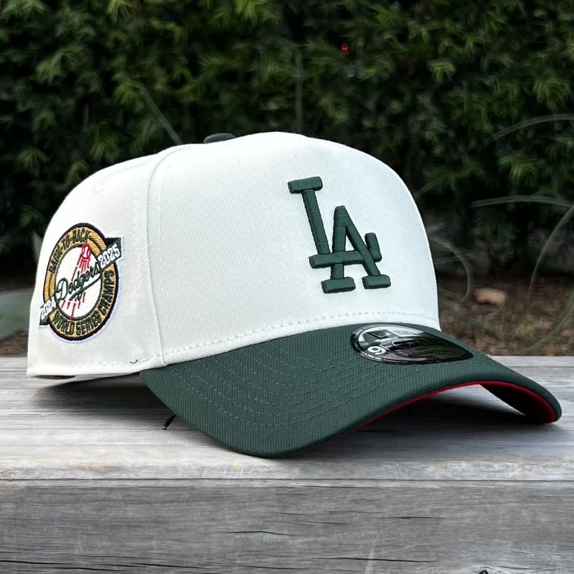 LA Ivory/Dark Green Back to Back World Series Champs Circle Red Under Visor 940 a-frame