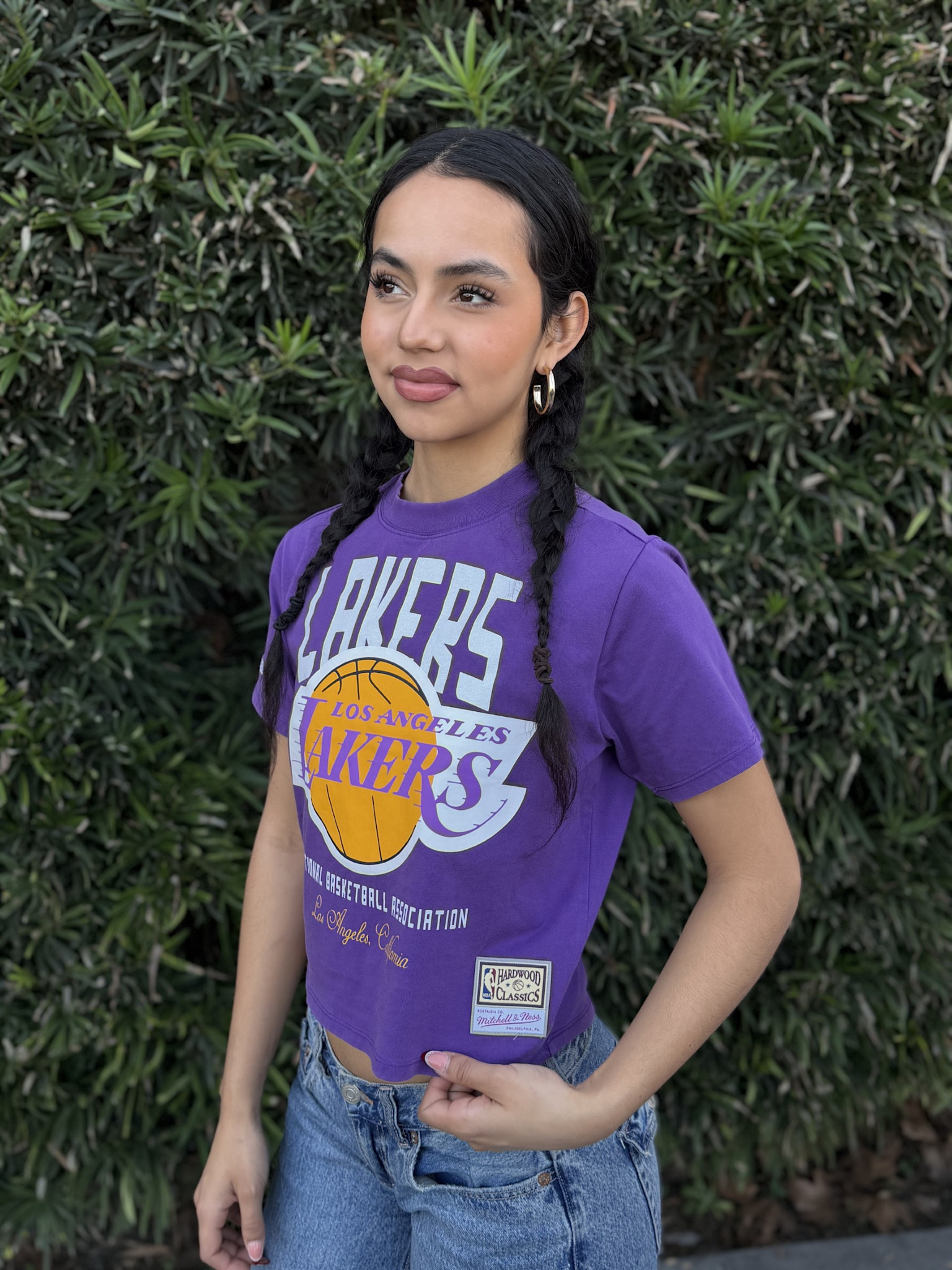 LA Lakers M&N Women's Purple Cropped Boxy Tee