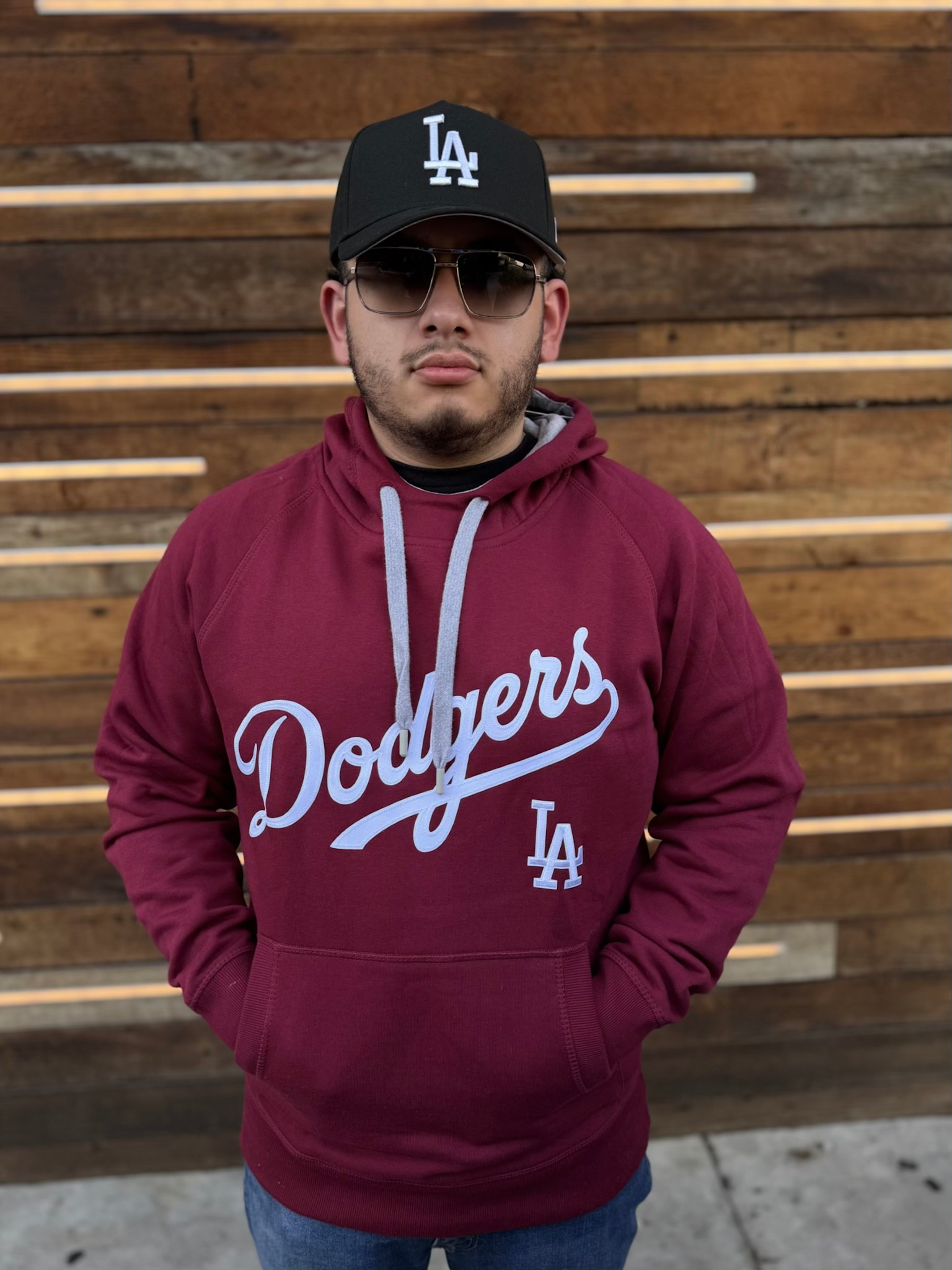 LA Dodgers Maroon Pullover Hoodie Wordmark