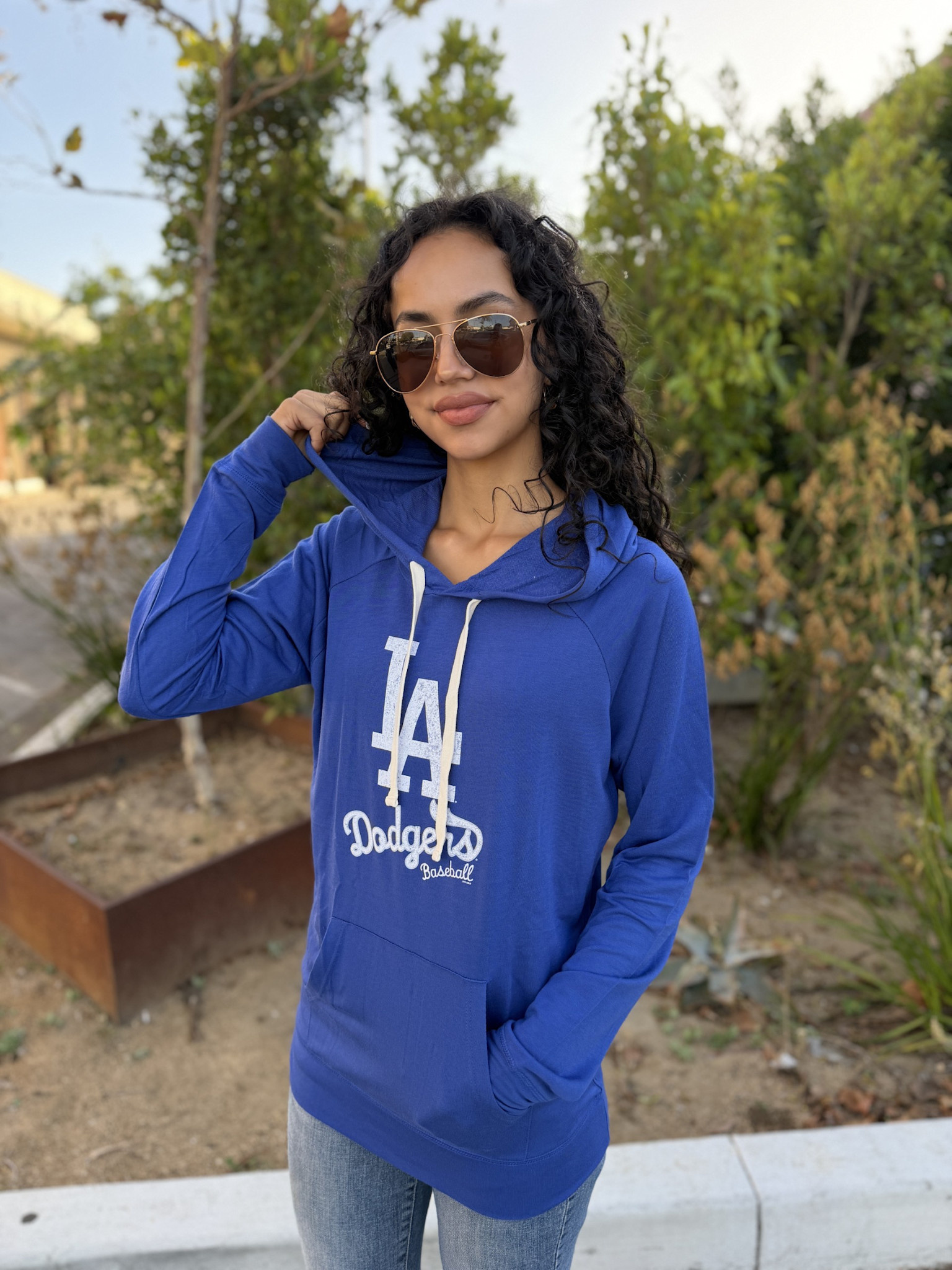 LA Dodgers Women's Pre-Game Royal Lightweight P/O Hoodie LA+Script