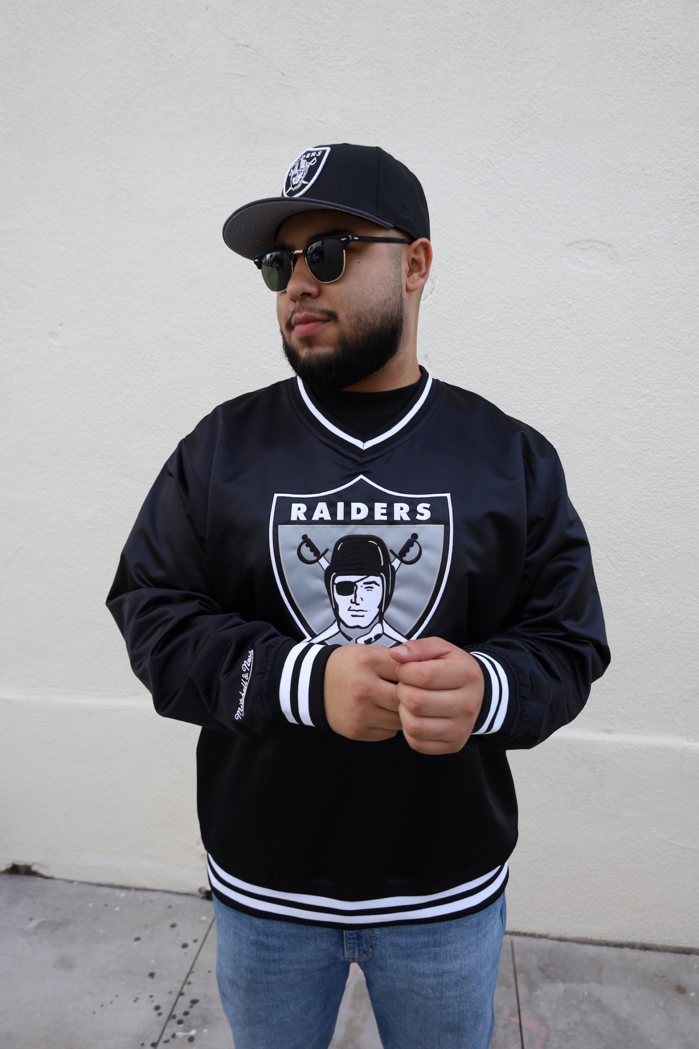 Raiders Men's Mitchell & Ness Black Satin Pullover